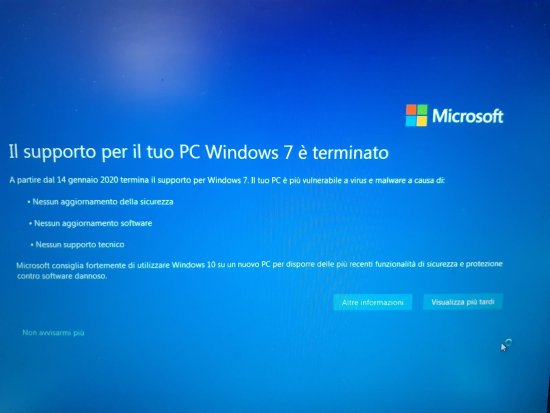 Oggi è apparso su tutti i computer con windows 7 il messaggio di fine supporto. In seguito alle numerose richieste